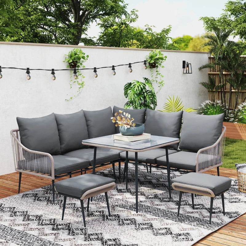 Outsunny Seven-Piece Garden Dining Set with Cushions - Grey