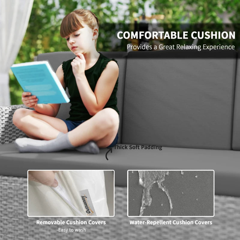 Outsunny Seven-Piece Rattan Garden Sofa Set, with Expanding Table - Grey