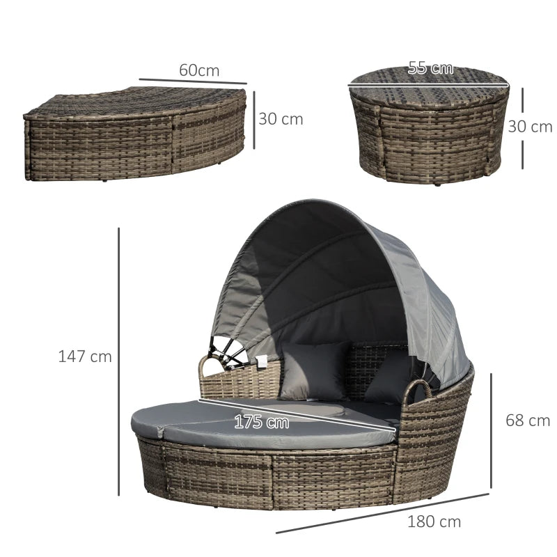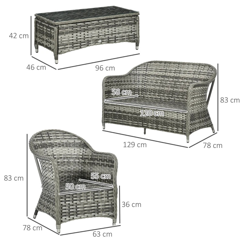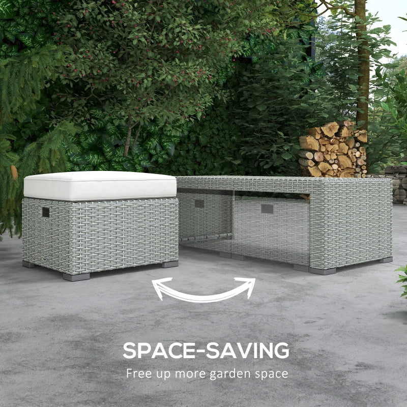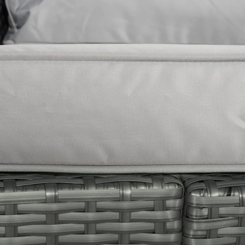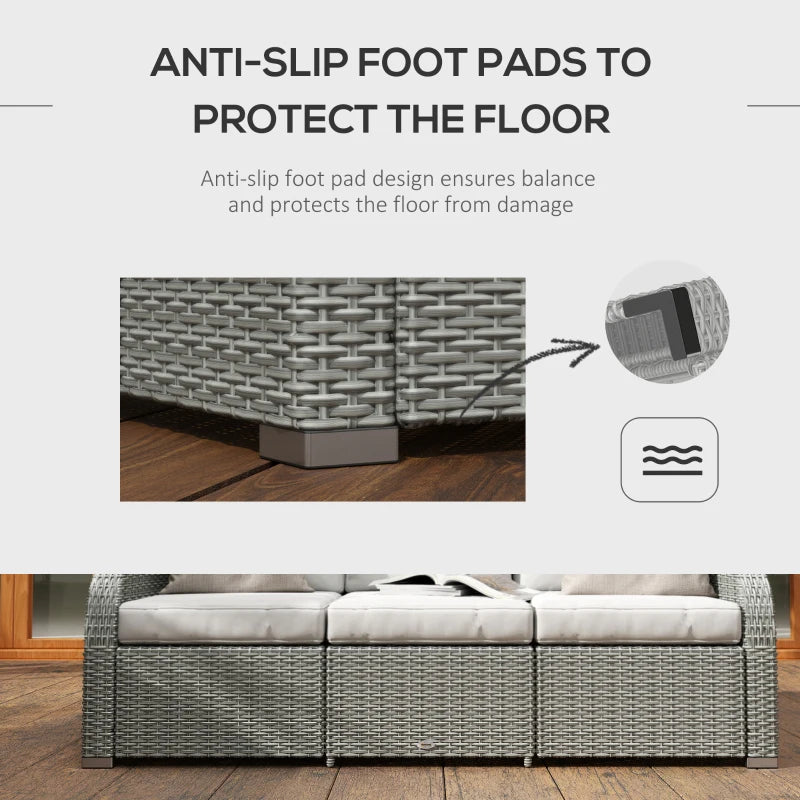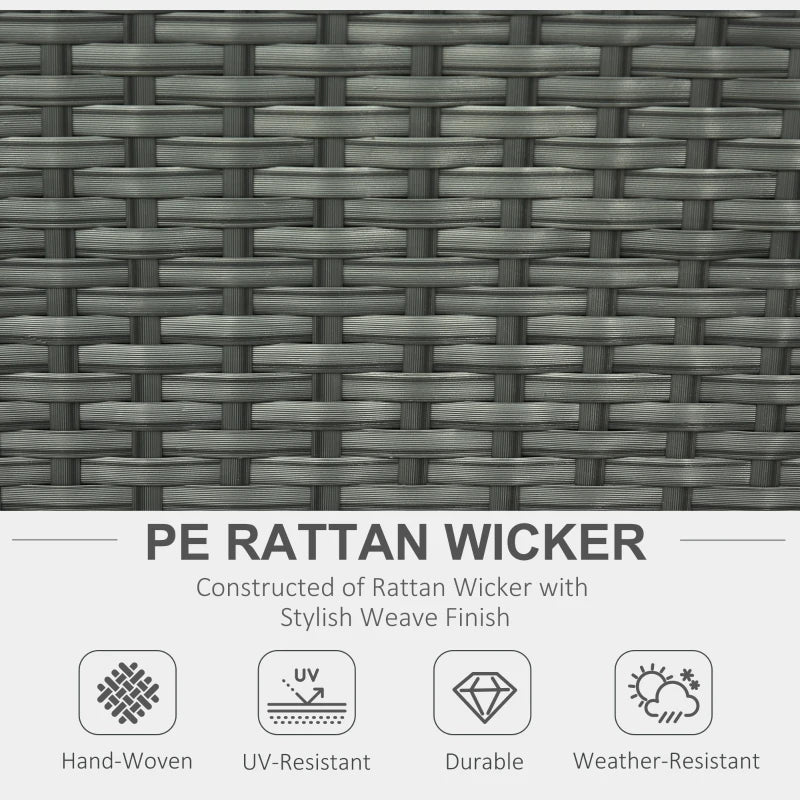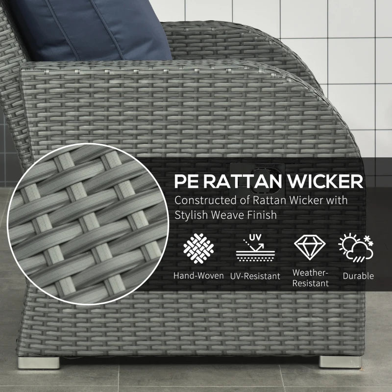 Outsunny Rattan Sun Lounger w/ Storage Tea Table & Footstools, Grey