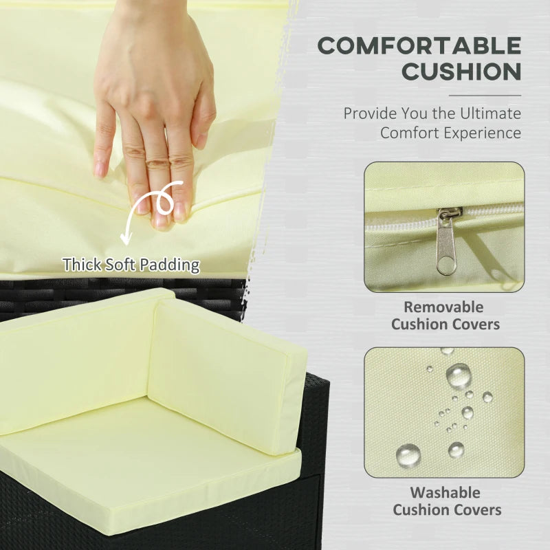 Outsunny Seven-Piece Rattan Garden Set, with Glass-Top Table - Black/Beige