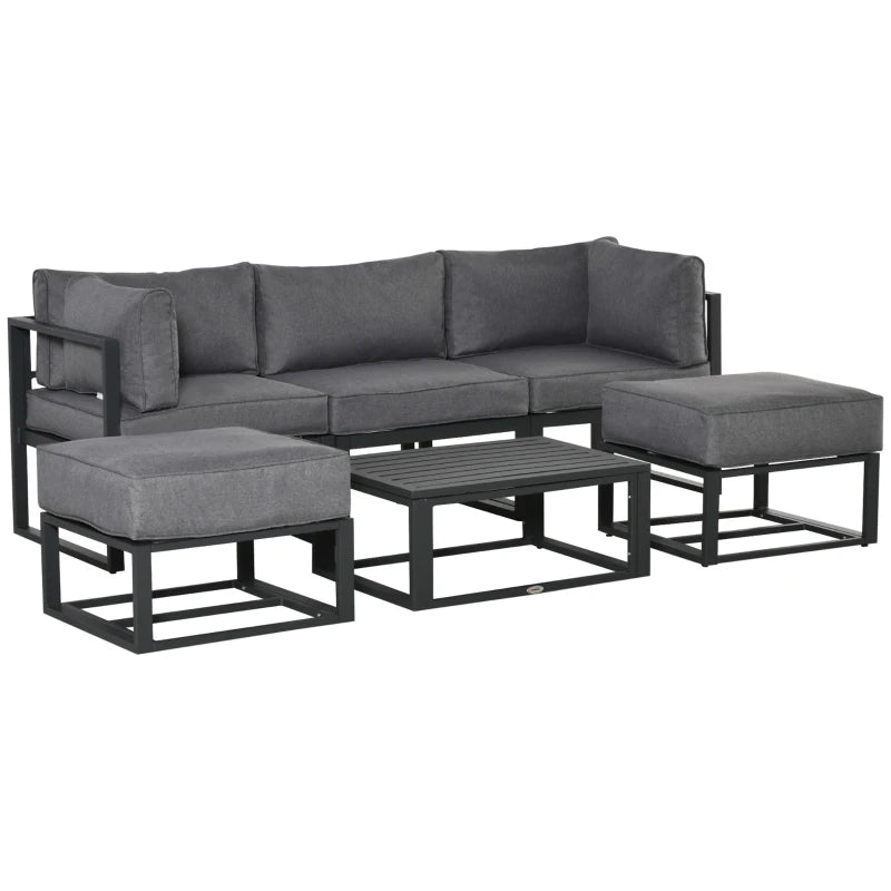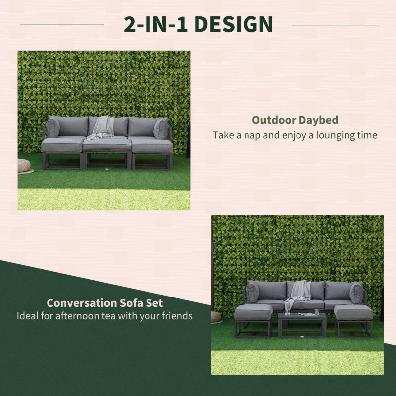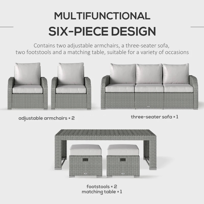 Outsunny Six-piece Outdoor Rattan Dining Set, Outdoor Sofa Set with Reclining Armchairs and Mental Frame, Grey