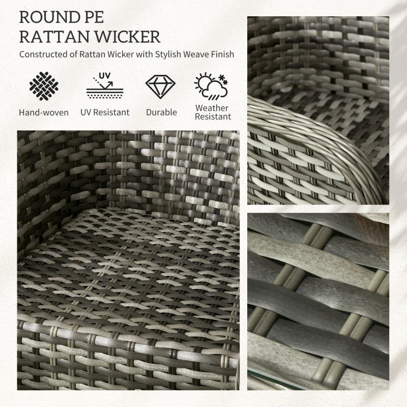 Outsunny Seven-Piece Rattan Garden Set, with Glass-Top Table - Mixed Grey