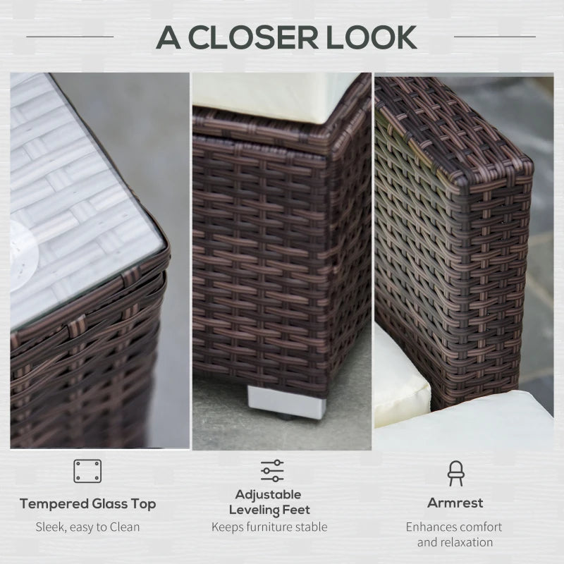 Outsunny Six-Piece Rattan Sofa Set, with Glass-Top Table - Mixed Brown