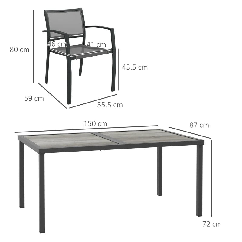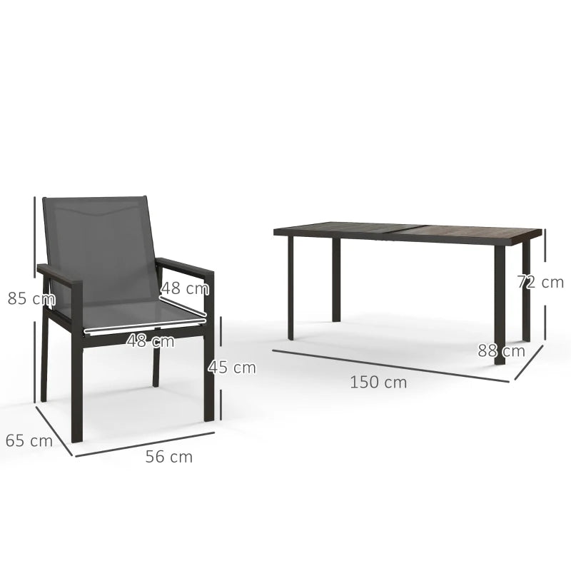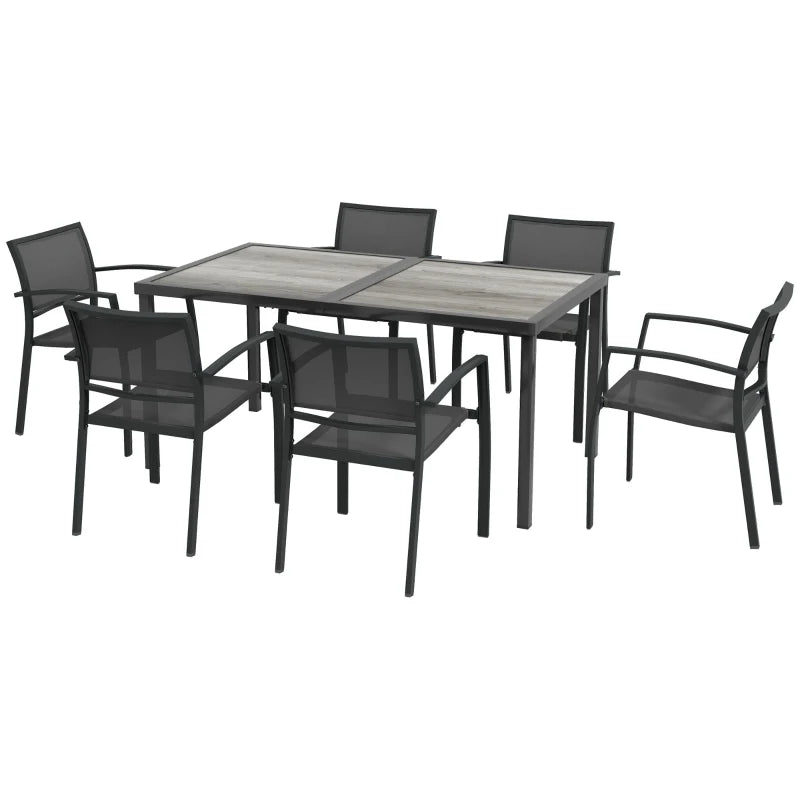 Outsunny Seven-Piece Casual Outdoor Dining Set, with Wood-Effect Table - Grey