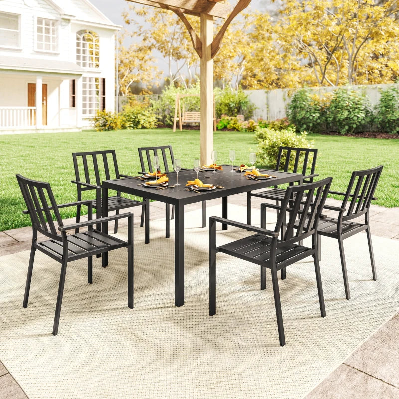 Outsunny Seven-Piece Minimal Metal Garden Dining Set, with Parasol Hole - Black