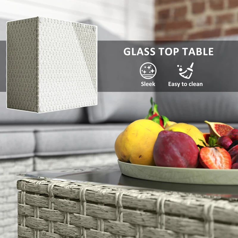 Outsunny Six-Piece Rattan Sofa Set, with Glass-Top Table - Mixed Grey