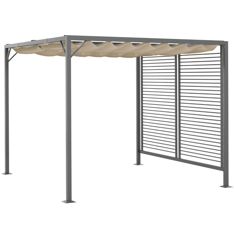 Outsunny 3 x 2.8m Metal Pergola, with Retractable Fabric Roof - Beige