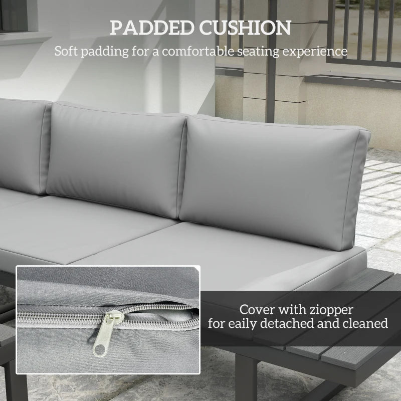 Outsunny 4 Pieces Aluminium Garden Furniture Set L Shape Sofa Set with Tables, Cushions for Indoor, Garden, Patio, Dark Grey