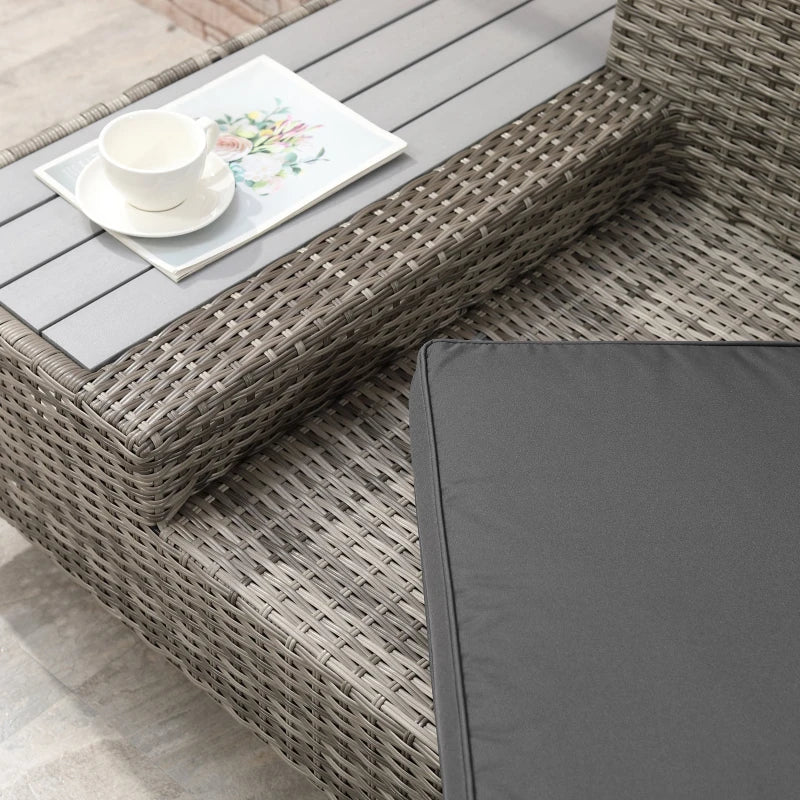 Outsunny 3PC Rattan Garden Furniture Storage Sofa Set 4 Seater Wicker Coffee Table Conservatory Sun Lounger Reclining Set Outdoor Weave with Cushion Grey