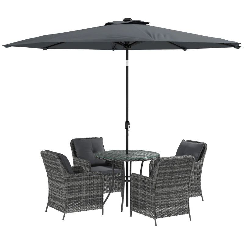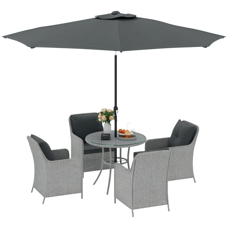Outsunny 4 Seater Rattan Dining Set with Parasol & Cushions - Mixed Grey