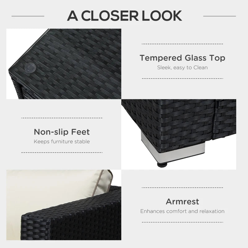 Outsunny 4 PCs Rattan Garden Furniture Outdoor Sectional Corner Sofa and Coffee Table Set Conservatory Wicker Weave Furniture with Armrest and Cushions - Black