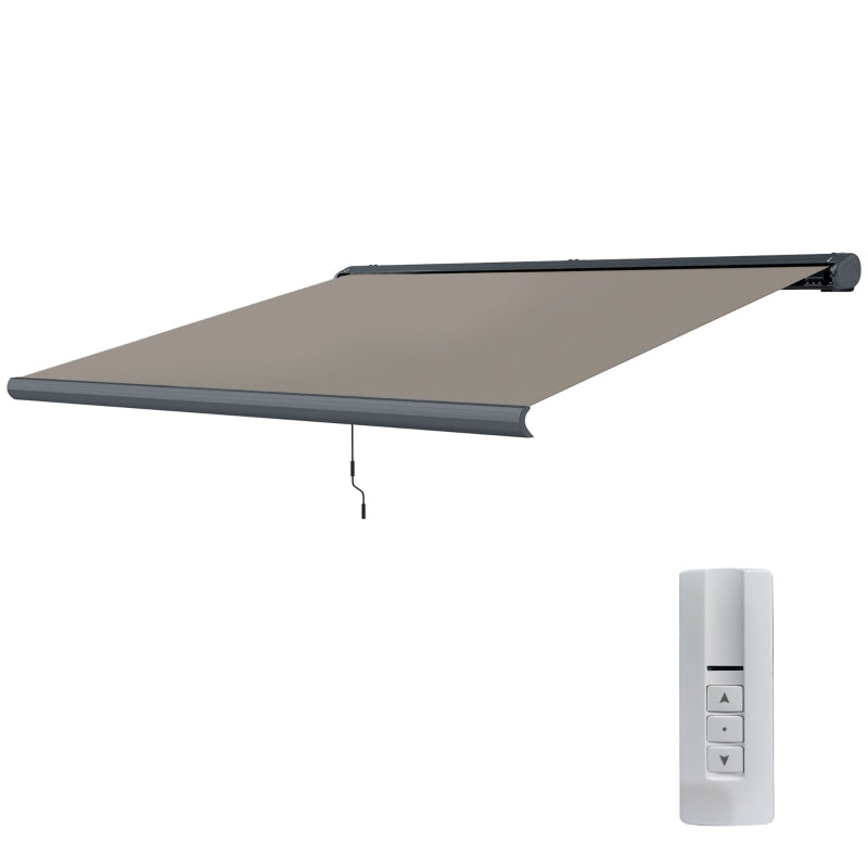 Outsunny 4 x 3(m) Full Cassette Electric Awning with Remote Controller, Aluminium Frame DIY Retractable Garden Awning, UPF50+ Sun Shade Canopy for Deck Door Window, Light Grey