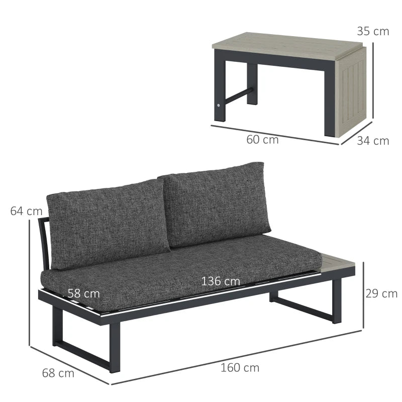 Outsunny 4 Seater L Shaped Aluminium Sectional Garden Furniture Set with 2 Loveseats and Wood-Plastic Coffee Table - Dark Grey