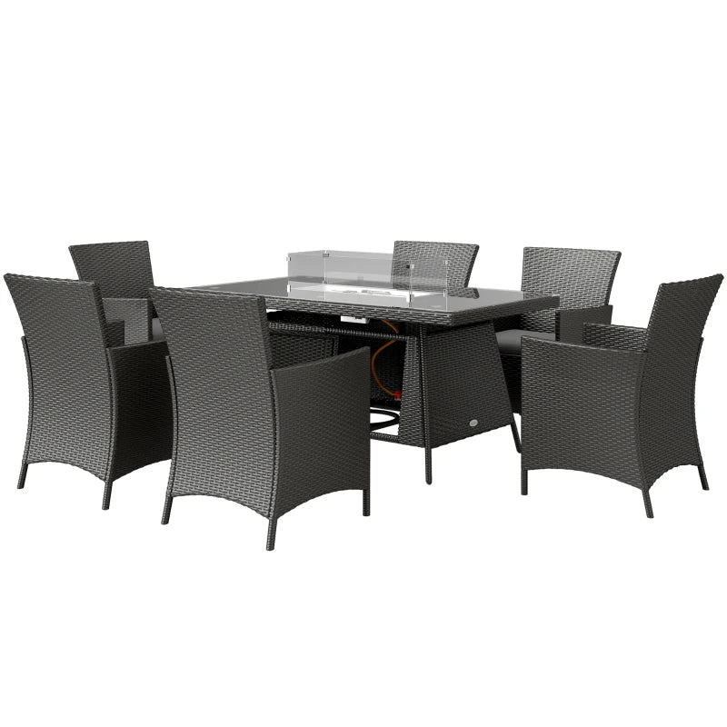 Outsunny Five Piece Rattan Garden Furniture Set with Gas Fire Pit Table and Footstool - Black and Cream White