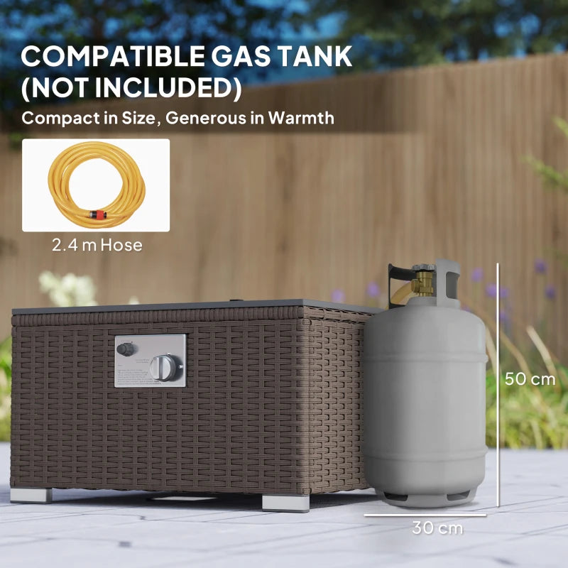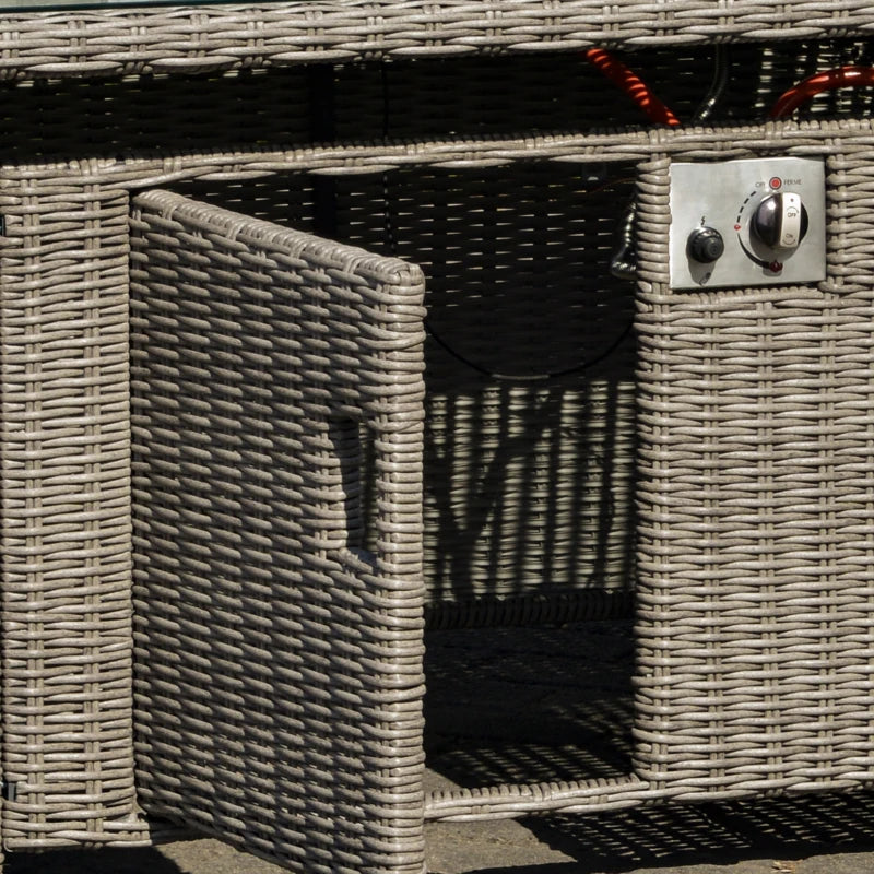 Outsunny Five Piece Rattan Garden Furniture Set with Gas Fire Pit Table and Footstool - Brown and Cream White