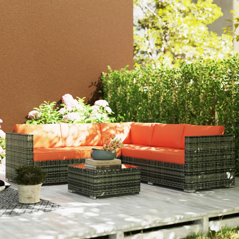 Outsunny Four-Piece Rattan Sofa Set - Orange/Grey