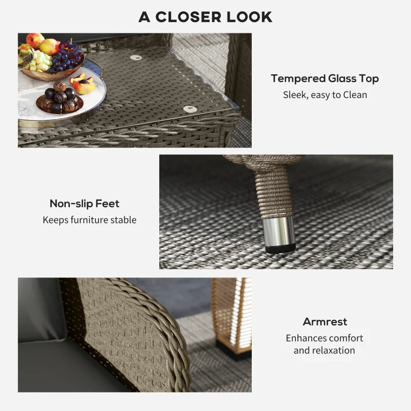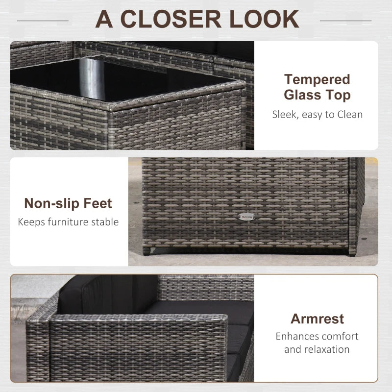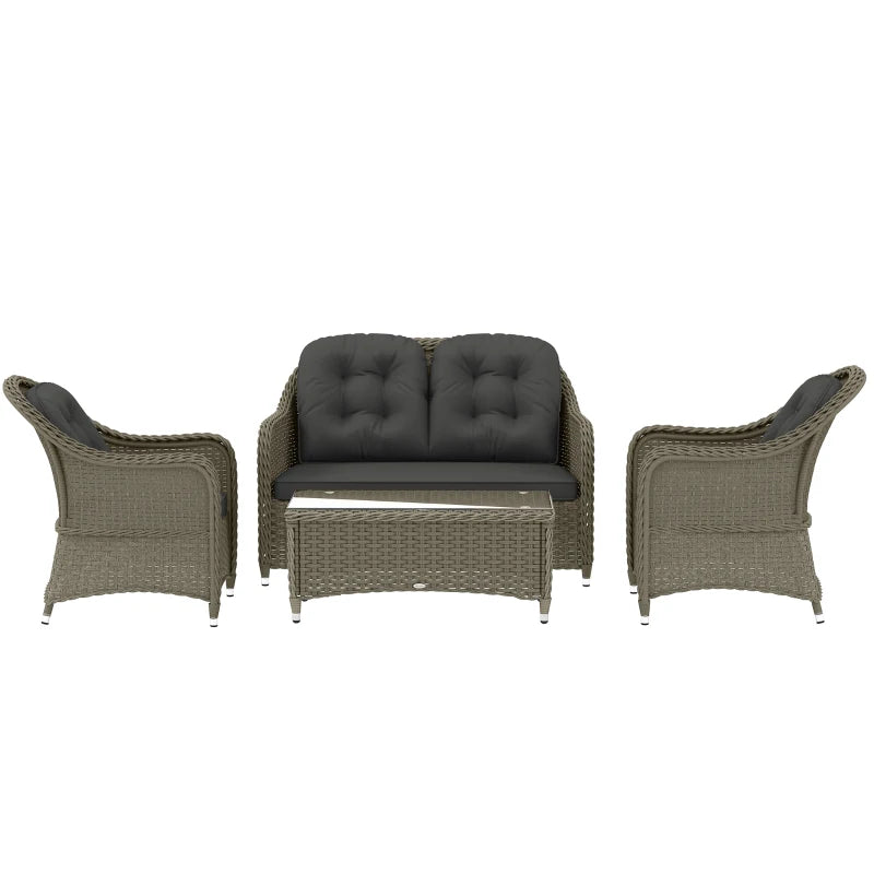 Outsunny Four-Piece Rattan Sofa Set, with Glass-Top Table - Light Grey