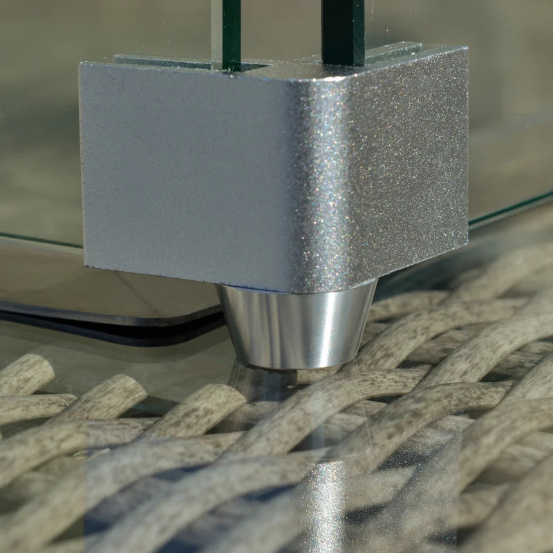 Outsunny Four Piece Wicker Rope Garden Furniture Set with Glass Top Coffee Table - Grey