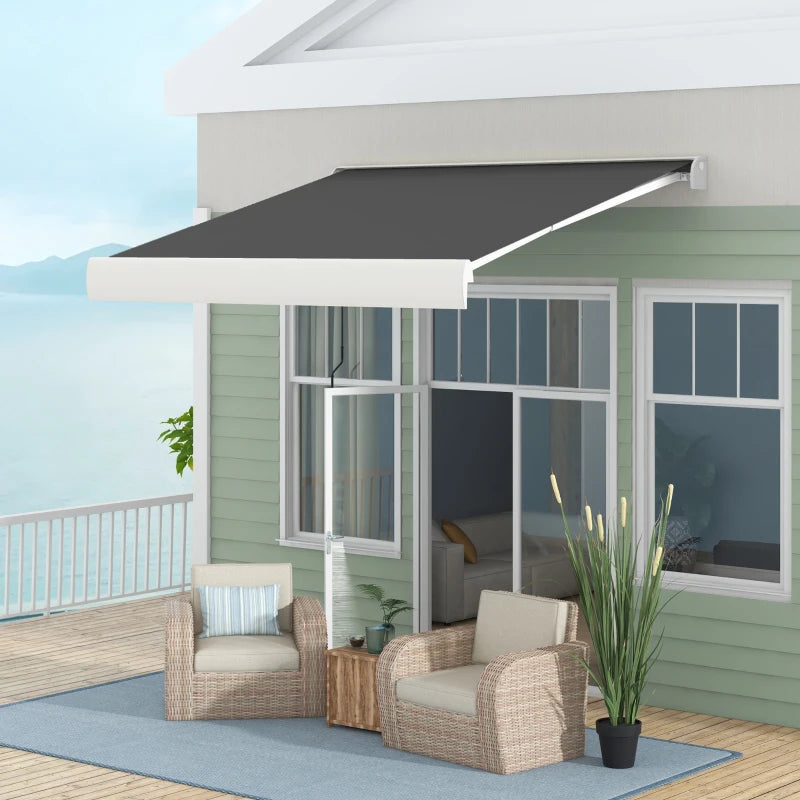 Provide cover for yourself outdoors instantly, with no fuss. Do it with this Outsunny retractable door awning. The frame is made from an aluminium and metal blend - a tough core. The 270gsm canopy is PU coated to shelter against sun glare, UV rays and mild weather. Use the included mounting hardware; you can install this outdoor garden awning on a concrete, solid brick wall and even on a wooden fence, any door, balcony patio or window.
