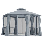 Outsunny 3 x 3(m) Hexagon Gazebo Patio Canopy Party Tent Outdoor Garden Shelter w/ 2 Tier Roof & Side Panel - Grey