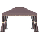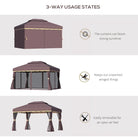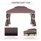 Outsunny 3 x 4m Aluminium Garden Gazebo, Marquee Canopy Shelter Pavilion Party Tent with Nets and Curtains for Garden and Deck, Coffee