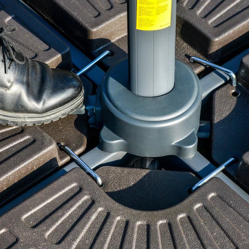 Innovation meets protection with this three-in-one Cantilever parasol from Outsunny. Feature one: it is fitted with solar-powered LED lights on the rib, meaning it will illuminate evenings and nights beautifully. Feature two: the switch doubles up as a power bank which is also solar powered, so you can charge your mobiles and other devices easily when outdoors. Feature three: the Cantilever design is impressive, beautiful and super easily to use. The large canopy fixes to five different angles and spins around a full 360° so you can find a position best for you, with a crank handle to open and close. This is all you need for the Summer and much, much more.