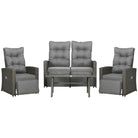 Outsunny 4 Piece Rattan Garden Furniture Set Outdoor Sofa Sectional Set with Glass Top Table for Poolside, Grey