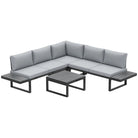Enjoy the outdoors in style with this Outsunny outdoor furniture set. Comes with two loveseats, a corner seat and a matching coffee table. Powder coated steel means each piece is strong, with the padded cushions keeping you comfortable. The small table included means a handy holding place.