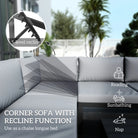 Outsunny 4 Pieces Garden Furniture Set, 5-Level Reclining Garden Corner Sofa Set, Outdoor Lounge Conversation Sectional with Cushions, Wood Effect Plastic Table, Black Frame & Light Grey Cushion