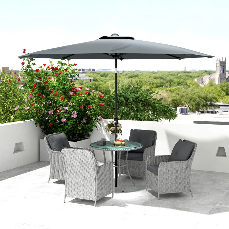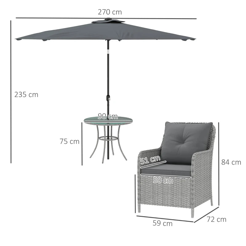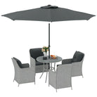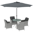 Outsunny 4 Seater Rattan Dining Set with Parasol & Cushions - Light Grey