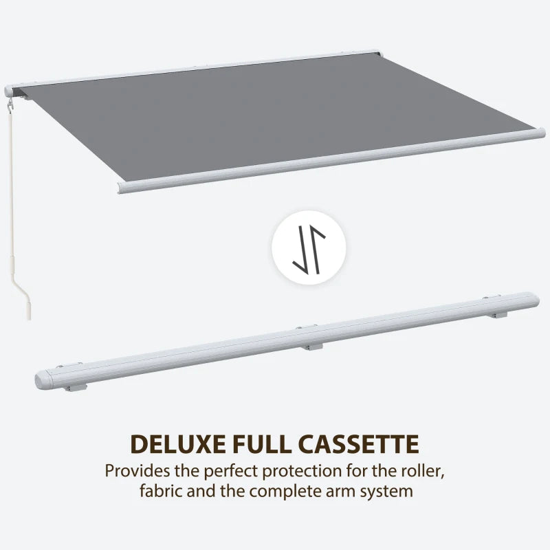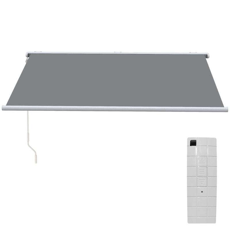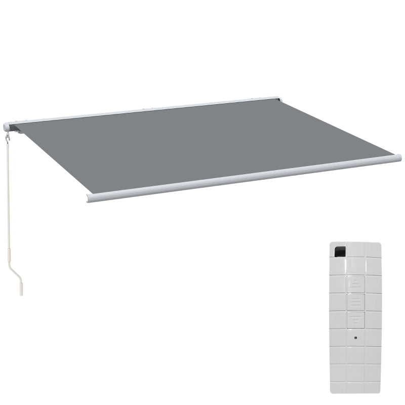 Outsunny 4x3m Full Cassette Electric/Manual Retractable Awning with Remote Controller, Sun Canopies for Patio Door Window with Remote Controller, Grey