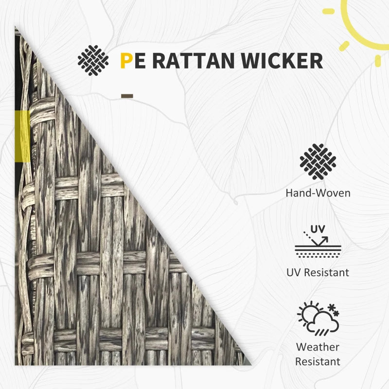 Make your home outdoors as inviting as the inside. This Outsunny garden sofa set is a super comfortable and stylish piece. Each piece offers plenty of room to sit, with padded cushions for comfort. Galvanised, powder coated metal frames mean a strong core, wrapped in stylish and protective plastic wicker. The rattan sofa set comes with armless chair, two corner chairs, a footstool and a glass-top coffee table.