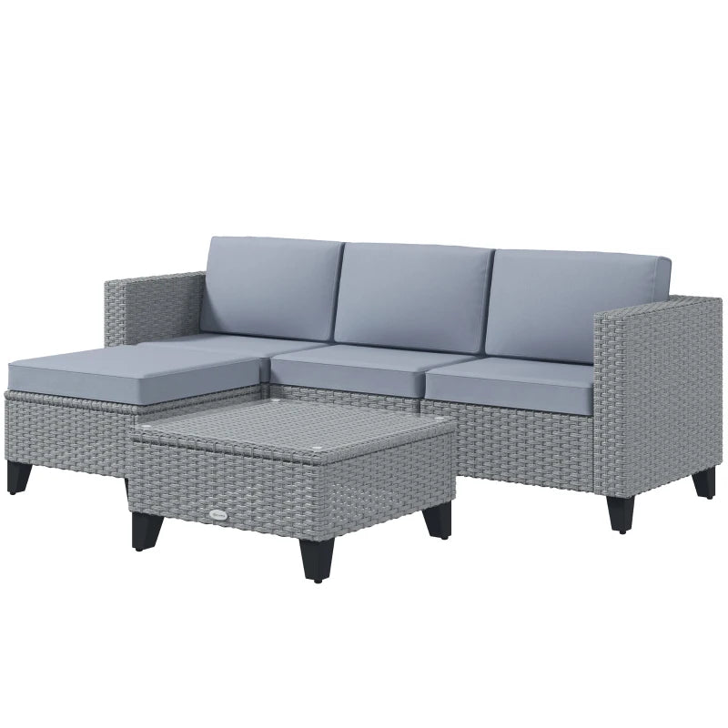 Outsunny 5-Piece Rattan Patio Furniture Set with Corner Sofa, Footstools, Coffee Table, for Poolside, Grey