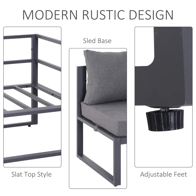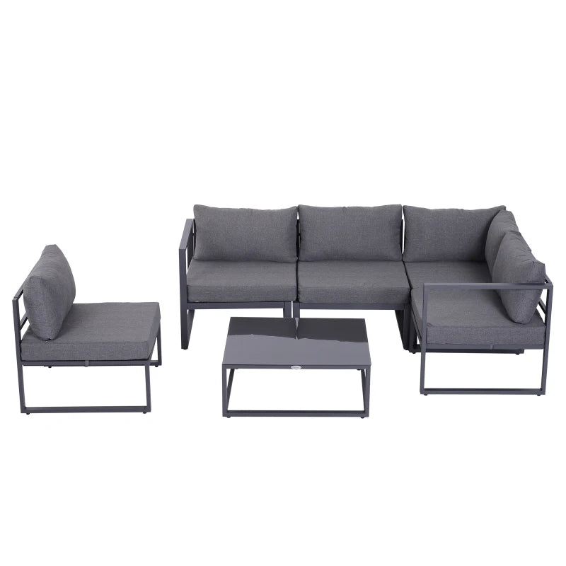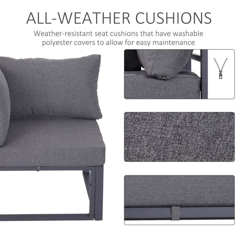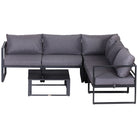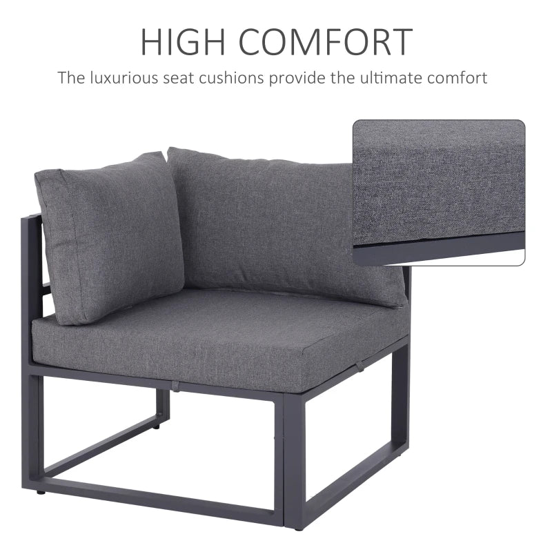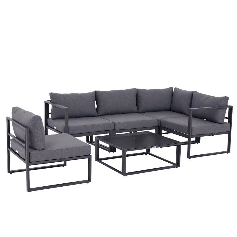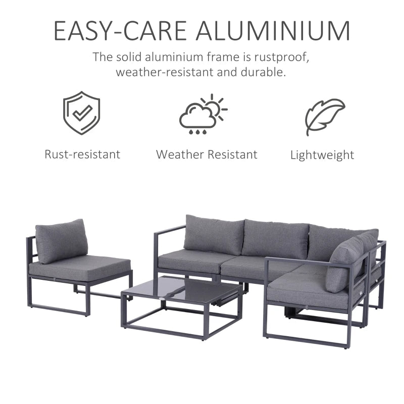 Outsunny 6 PCs Outdoor Indoor Sectional Corner Sofa Set Thick Padded Cushions Aluminium Frame 5 Seaters 1 Coffee Table Grey