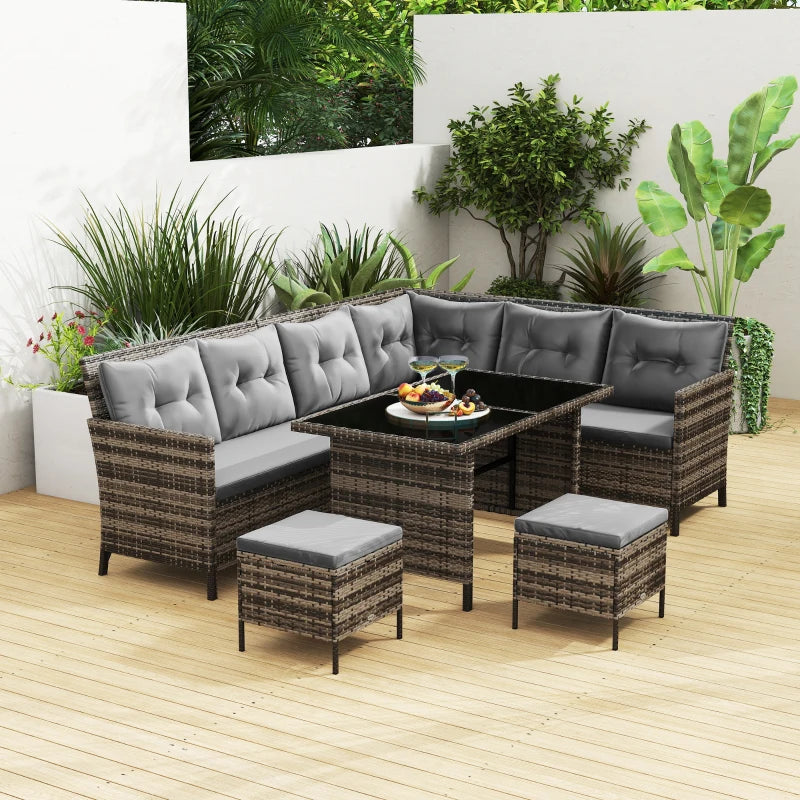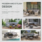 Outsunny 8 Seater Patio wicker Sofa Set ,Outdoor Couch with Table & Cushions, Grey