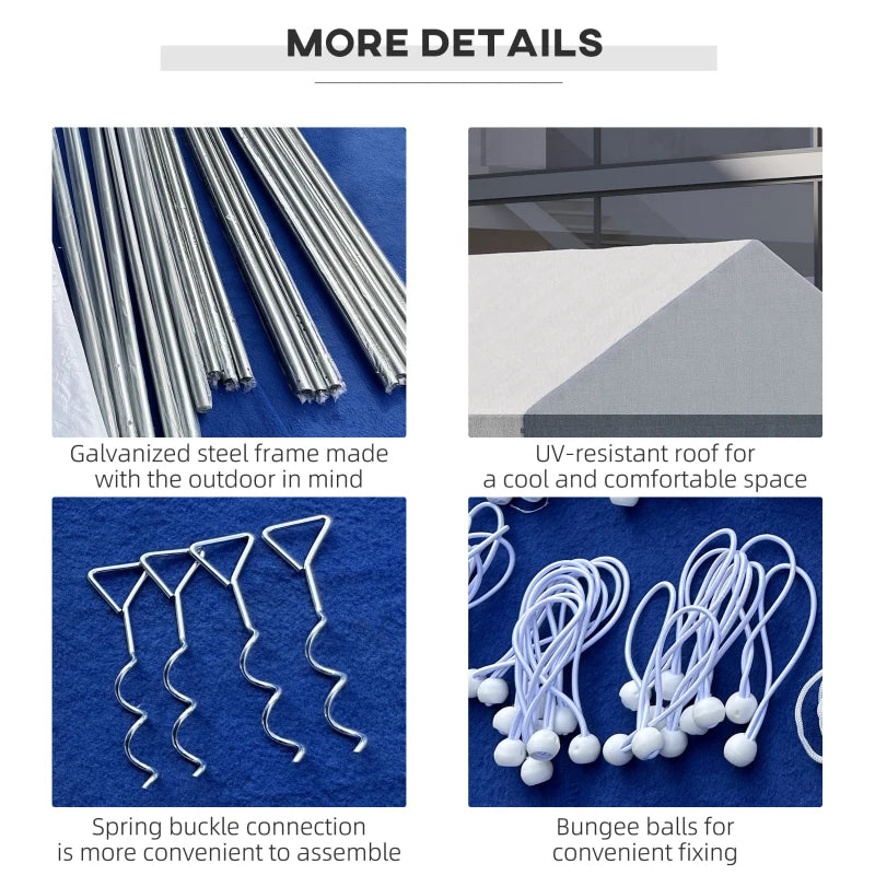 For your outdoor gatherings this season, say hello this cool stripey 4 x 8m marquee gazebo, from Outsunny. A galvanised steel frame means a strong, sturdy core; it's fitted with a thick plastic canopy for a safe inner shelter. The roof shields you inside from direct sunlight and light wind - ideal for keeping you and guests sheltered when needed. All the walls can be taken off when you want to open up on hotter days - with windows to allow sunlight in when they're fixed in place.