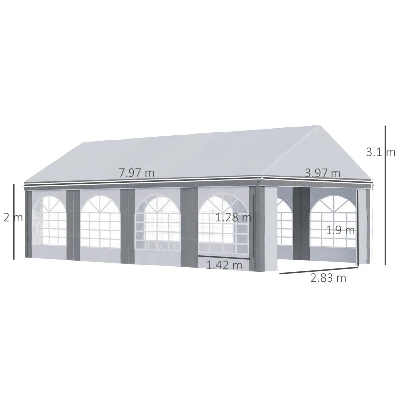 Outsunny 8m x 4m Marquee Gazebo with Sides, Level 4 Wind Protection & Waterproof, Light Grey
