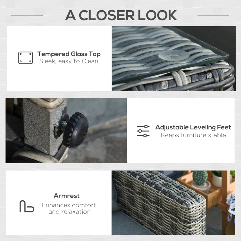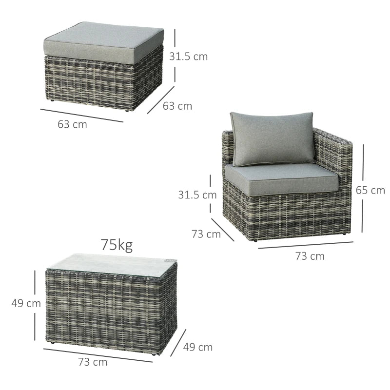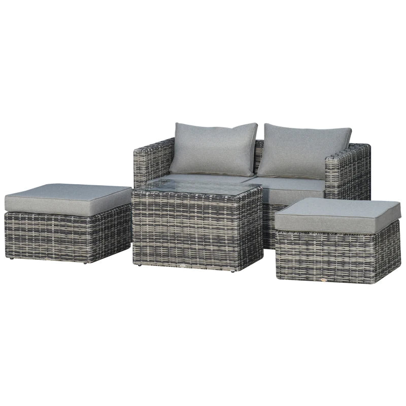 Outsunny Five Piece Rattan Armchair, Stool and Table Set - Mixed Grey