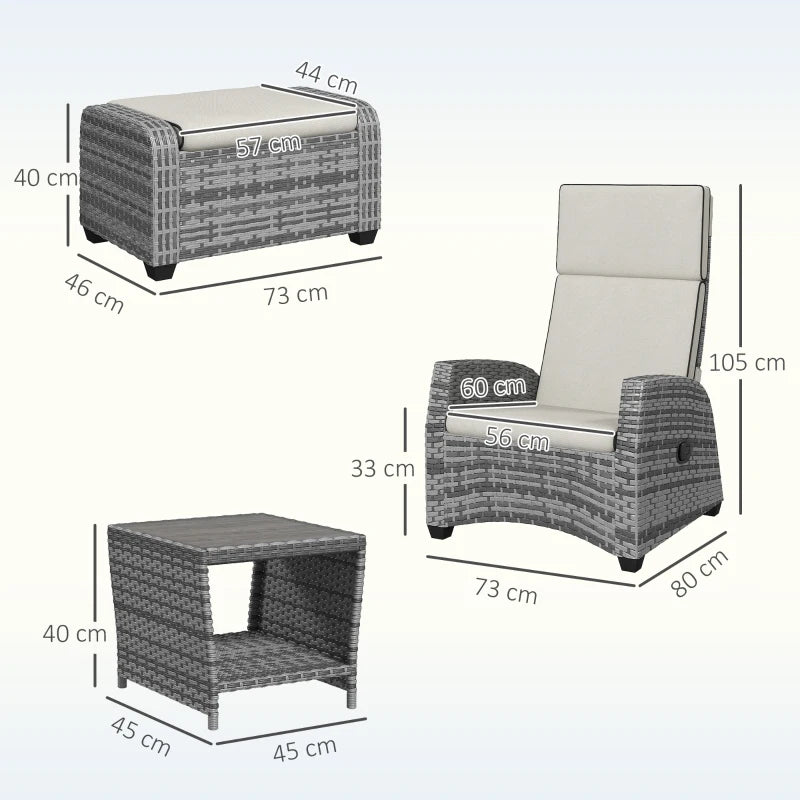 Outsunny 4 Pieces Rattan Garden Furniture Set - Grey