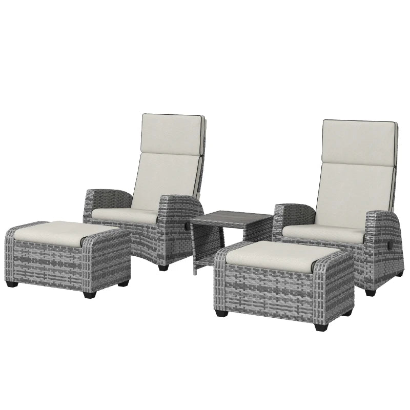 Outsunny Five Piece Rattan Armchair, Stool and Table Set - Mixed Grey