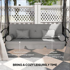 The 3 seaters multi-functional swinging garden chair can be converted to a single bed in seconds. With cushions, two soft pillows and two neck rolls, swing seat with canopy offers optimal comfort whether you are sitting or lounging. The removable zippered mesh curtains on all sides protect you against mosquitoes and allow for fluid air circulation. The gazebo swinging chair bench with a 300kg weight capacity allows you to relax on the comfortable swing chair hammock with your loved ones.