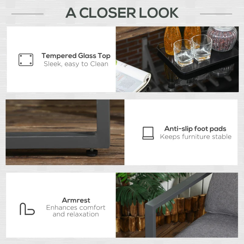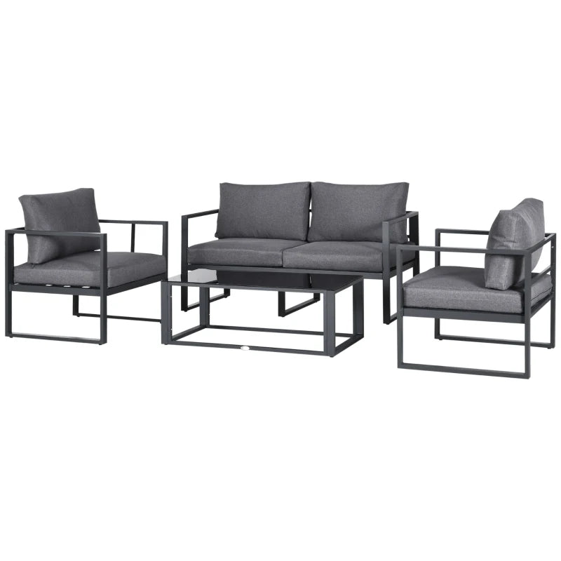 Outsunny 4 Pieces Garden Sofa Set 2 Single Armchair 1 Bench & Side Table Set Aluminium Frame Patio Furniture with Cushions Grey