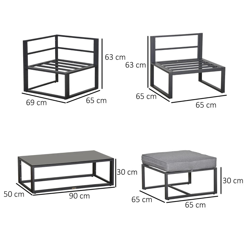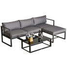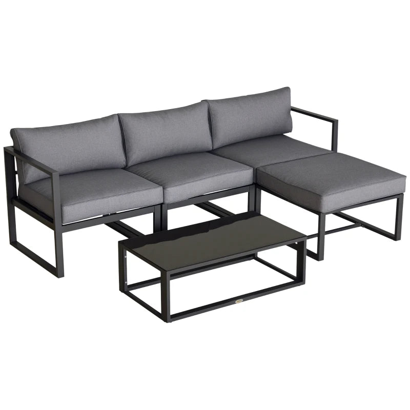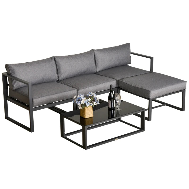 Outsunny 5 Pieces Outdoor Patio Furniture Set, Sofa Couch with Glass Coffee Table, Cushioned Chairs and Aluminum Tube, for Balcony Garden Backyard, Grey