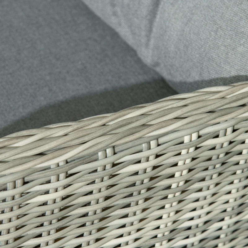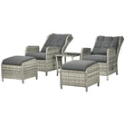 Outsunny 5 Pieces Rattan Bistro Set with Adjustable Back, Reclining Wicker Balcony Furniture with Cushions, Glass Top Coffee Table and Footstools, Outdoor Table and Chairs, Grey