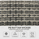 Your excellent company to gather round under the sun-say thanks to this Outsunny rattan garden sofa set. Each piece has a strong, powder coated steel frame, which is wrapped with plastic wicker-a stylish rattan look, which also protects the steel frame. Set comes with two armchairs, two footstools, a three-seater sofa and a matching coffee table. All seats and footstool come with padded cushions for comfort. Note: two people required to build this set.