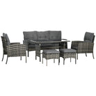 Outsunny 5 Seater Rattan Garden Furniture Set, 2 Armchairs, 3-Seater Wicker Sofa, 2 Footstools and Glass Table, 6 Piece Patio Rattan furniture Sofa Sets with Cushions for Conservatory, Mixed Grey