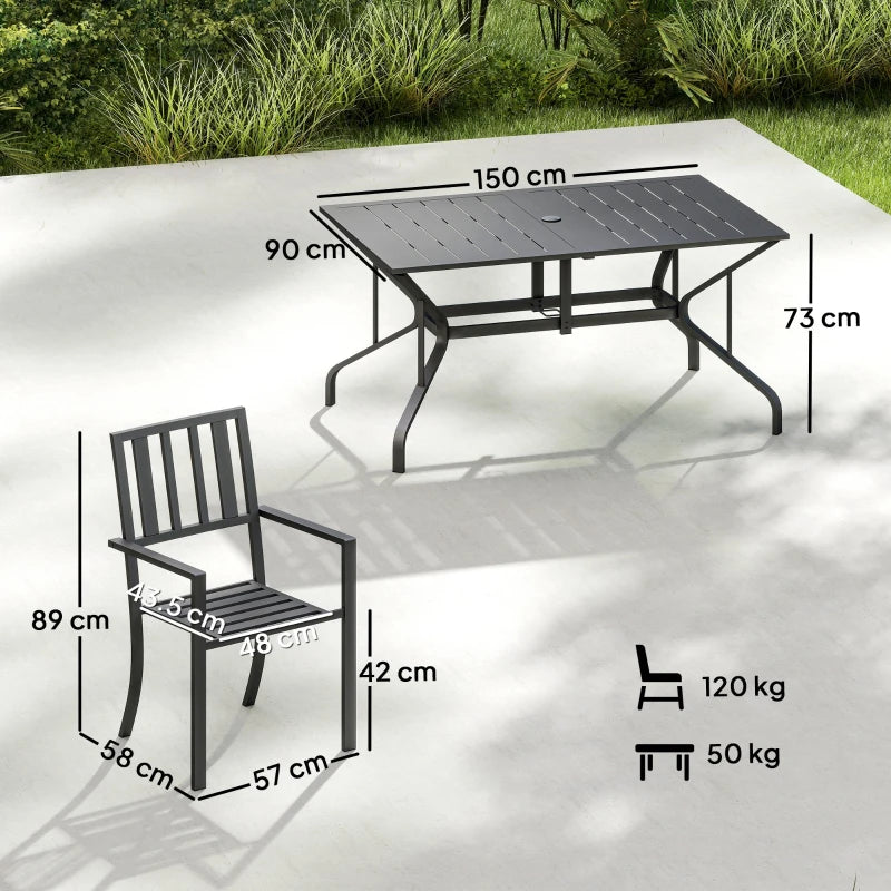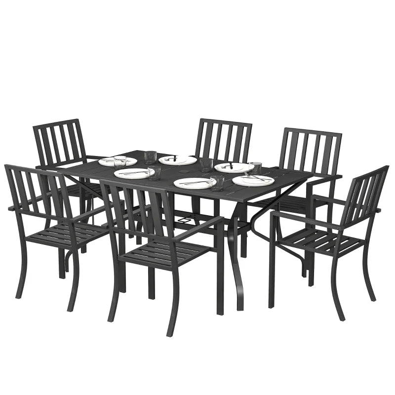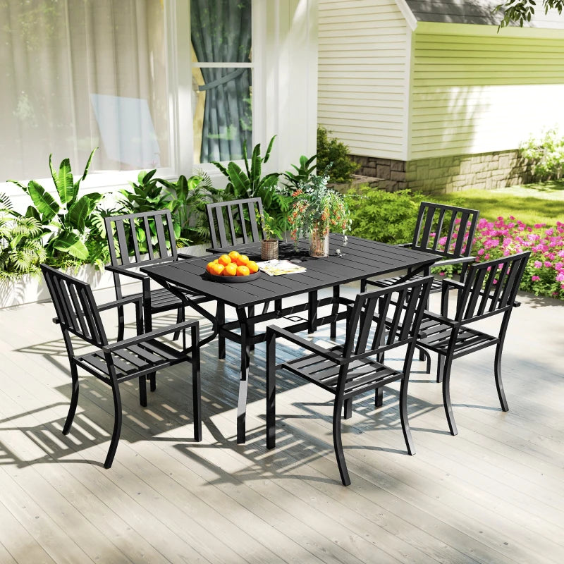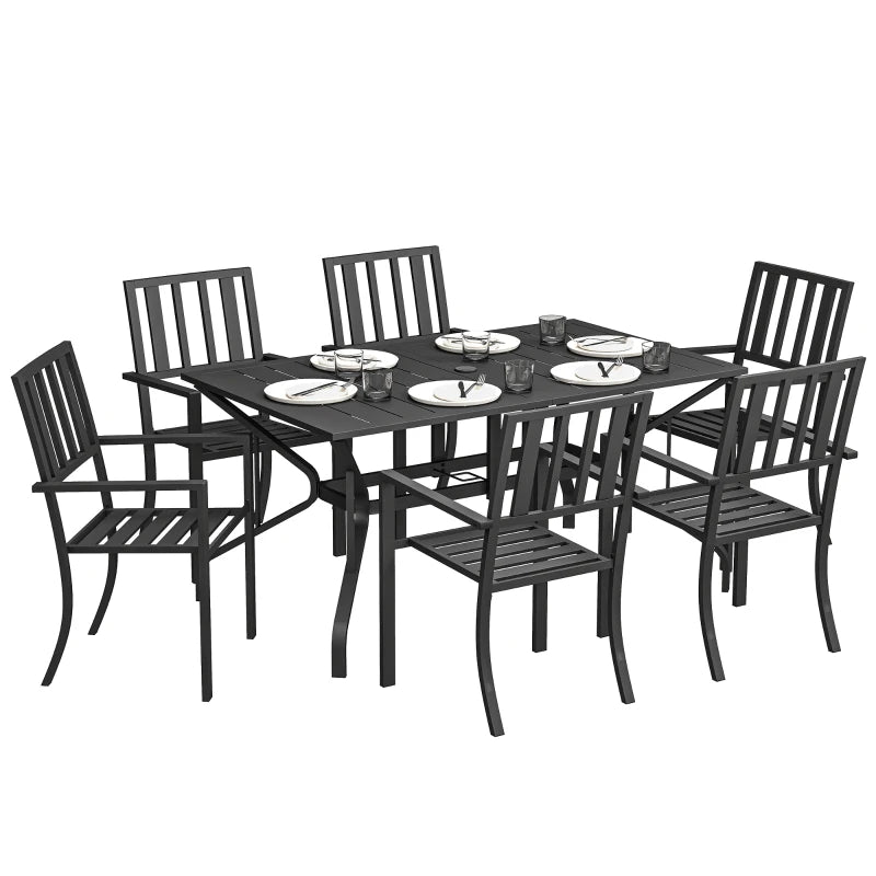 Outsunny 7 Pieces Garden Table and Chairs 6 Seater Outdoor Table and Chairs with Umbrella Hole, for Poolside, Garden, Black