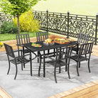 • Seven-piece dining set includes six chairs and a matching table