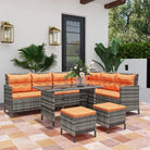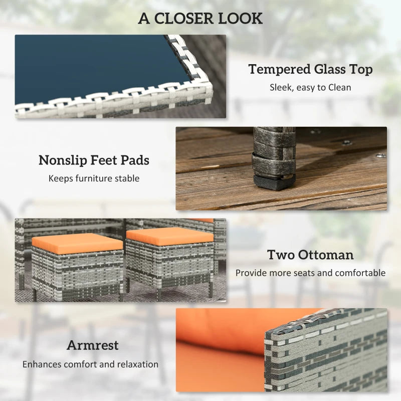 Outsunny 7-Seater Patio wicker Sofa Set Rattan Chair Furniture w/ Glass & Cushioned, Orange