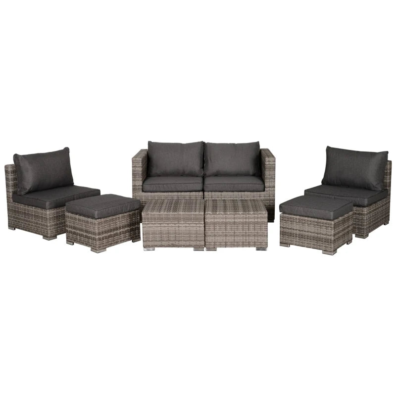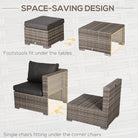 Outsunny 8 Pieces Rattan Garden Furniture Set, Garden Corner Sofa Set with 4 Chairs, 2 Footstools, 2 Coffee Tables and Cushions, Space-Saving Design, No Assembly Required, Grey